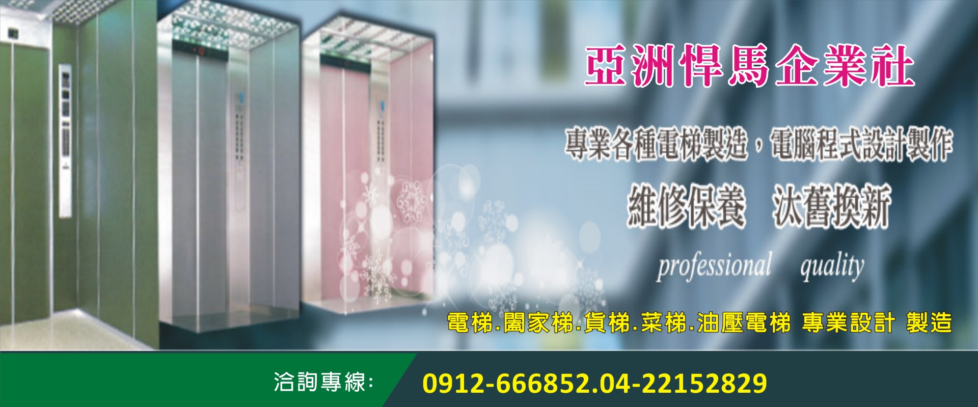 電梯專業設計製造、電腦程式設計製作、電梯維修保養、客用電梯、住家電梯、貨用電梯、油壓電梯、家庭電梯、闔家梯、客貨電梯、送貨電梯、電梯製造、送菜梯、台中電梯、台中送菜梯、台中家用電梯、台中送貨電梯、台中送菜電梯、台中油壓電梯、中部電梯、中部送菜梯、中部貨梯、中部油壓梯